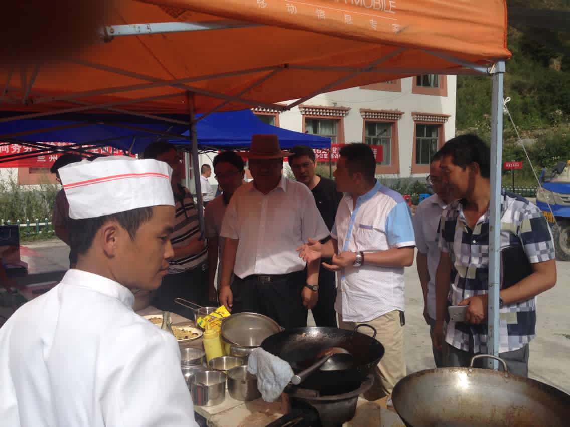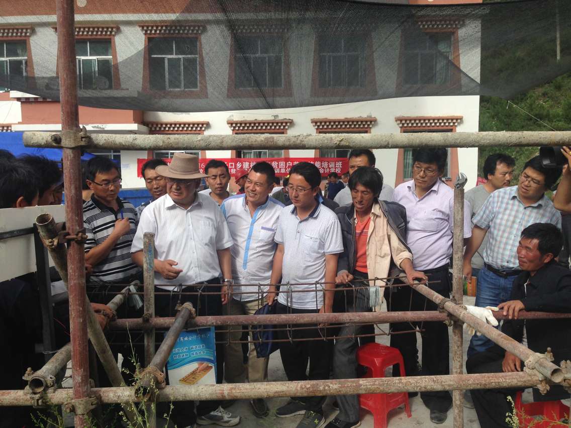 【兰商快讯】 2016年8月11日下午,由迭部县扶贫办主任王玉国引领迭部县县委书记仁青东珠、挂职县委副书记王小宁、县委办主任耿态、县委农办主任杨飓、财政局局长赵瑞九、发改委主任杨海强、统计局局长马育宏、纪委副书记陈劲松、组织部副部长东才让多杰、扶贫办副主任鲁永杰、住建局副局长张学成等领导亲临迭部县腊子口乡精准扶贫劳务技能培训现场,检查兰州商业会计学校的培训过程和培训成效,电视台记者全程跟踪报道。
